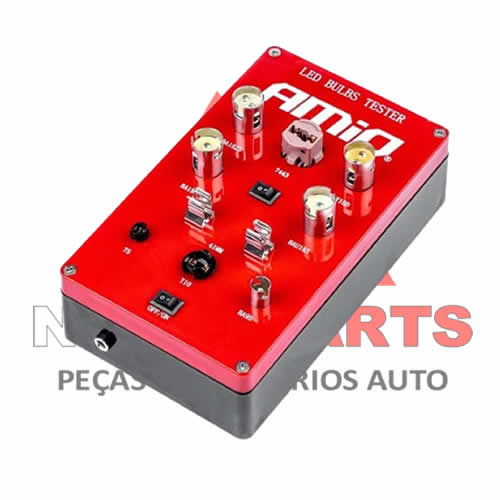 As tomadas universais cobrem os tipos mais populares de lâmpadas automotivas, tornando o testador versátil e abrangente.